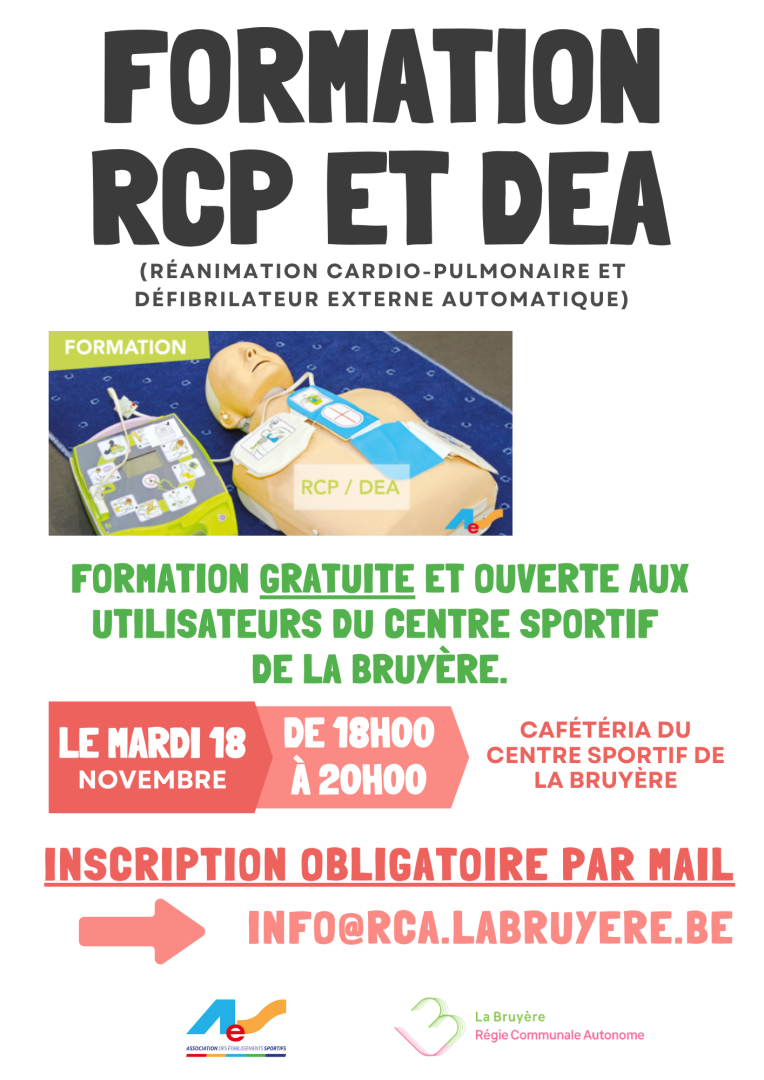 Formation GRATUITE RCP (Réanimation Cardio-pulmonaire) et DEA (Défibrilateur Externe Automatique)