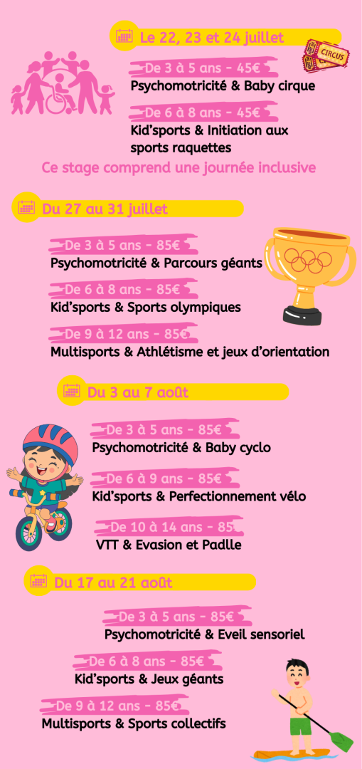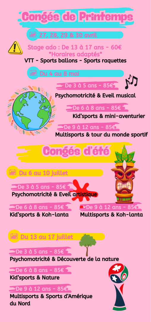 ⏳ Faites vite votre choix et inscrivez vos enfants sans tarder : les places sont limitées afin de garantir une expérience de stage optimale.