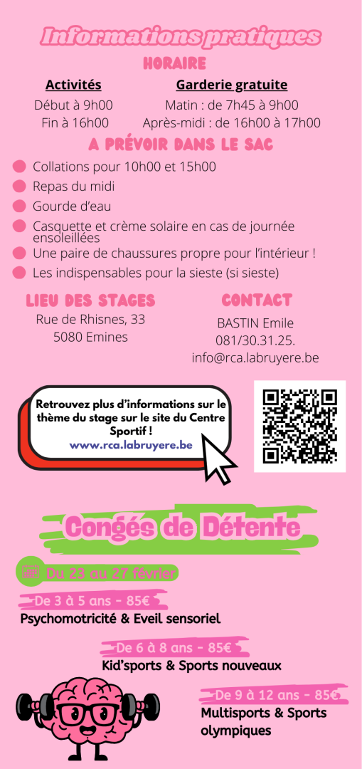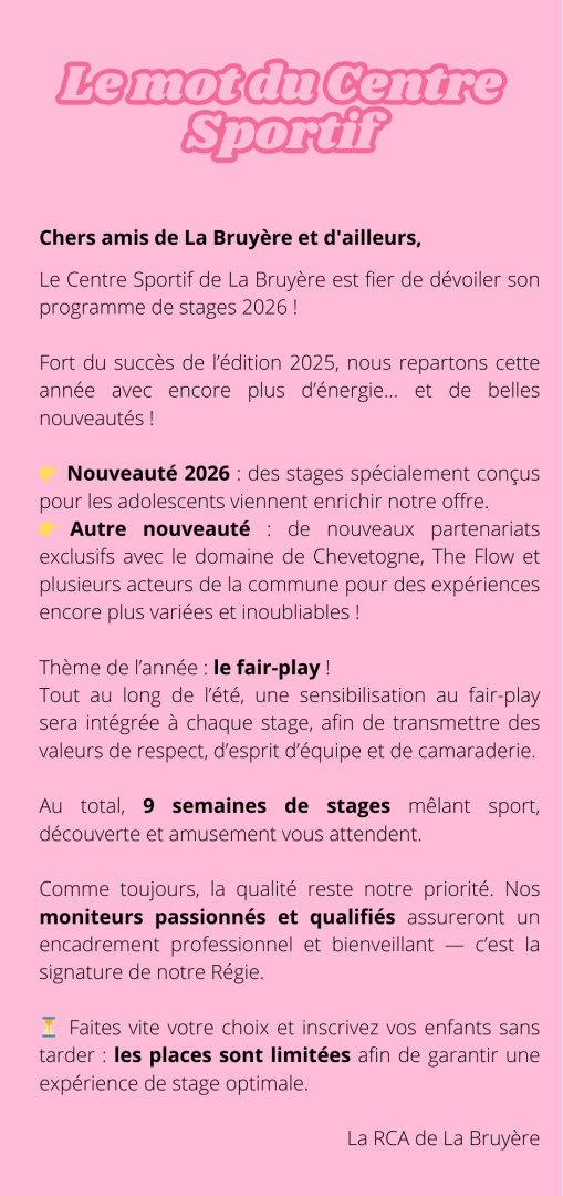 Le Centre Sportif de La Bruyère est fier de dévoiler son programme de stages 2026 !